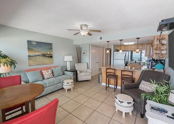 Island Winds West 875 By Albvr - Upgraded Beachfront Condo - Fantastic Location villa features an equipped kitchen where guests can find coffee and tea making facilities, a fridge, and a kitchenware. Roasted Oak Coffee & Wine Bar with delectable dishes is a few steps from this accommodation. This Gulf Shores villa is also 41 miles from Pensacola International airport.